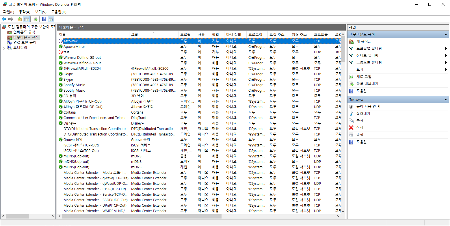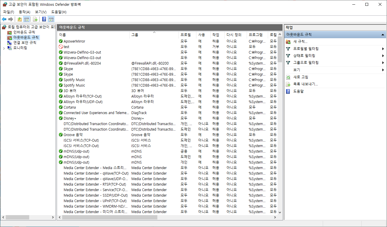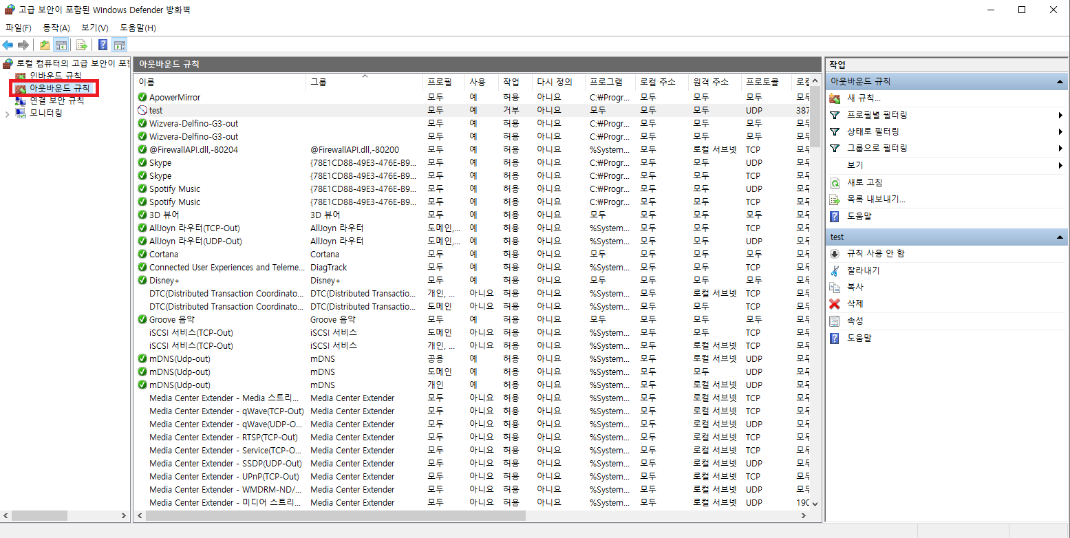 아웃바운드 규칙은 내 PC 에서 외부로 나가는 통신 즉