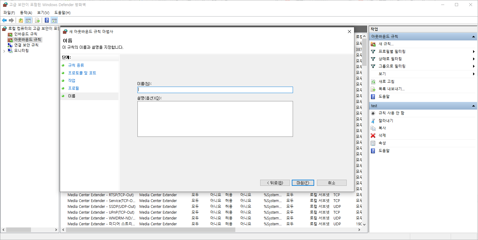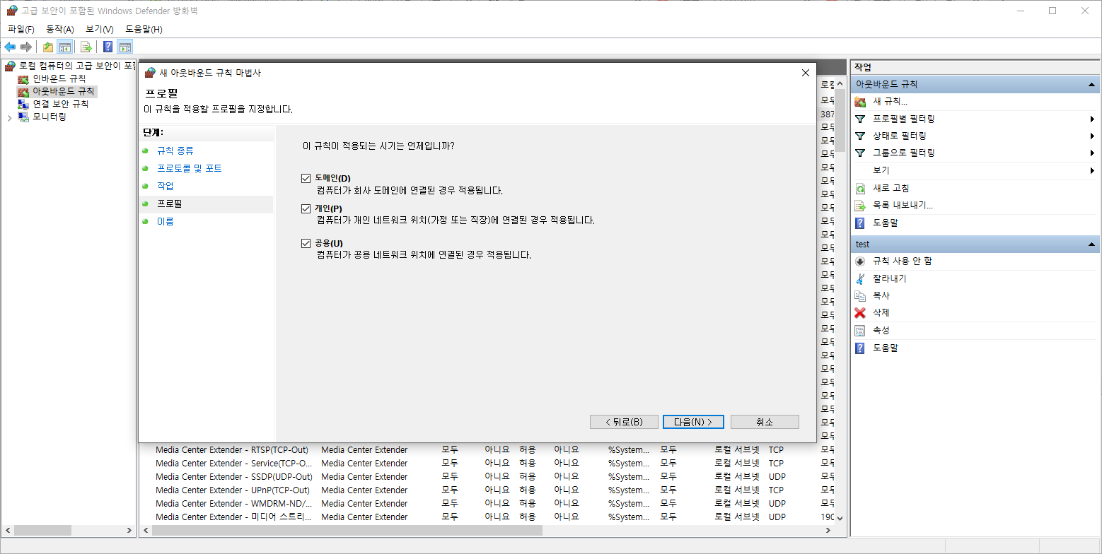 방화벽을 직접 설정할 수 있는 창이 나오게 됩니다.